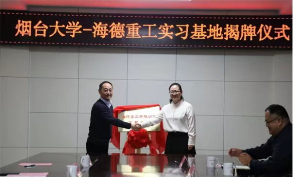 在座谈会上,逯静洲详细介绍了学院发展规模、师资队伍建设、学院专业特色等方面的情况。宓洪江介绍了惠民县产学研需求情况。随后,逯静洲与李霞为烟台大学——海德重工实习基地揭牌,曲峰与宓洪江签署“党建领航 惠创惠享”科创联盟共建协议书。