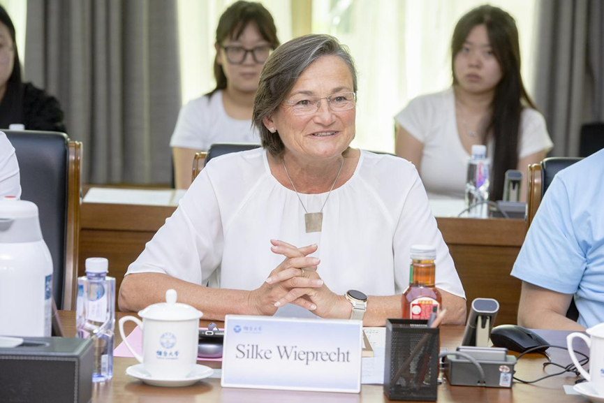 Silke Wieprecht 教授在致辞中高度肯定了烟台大学在生态保护领域的前瞻性布局。她表示,斯图加特大学水利与环境模拟研究所(IWS)深耕流域治理数十年,而中国在黄河等大河流域的治理实践为全球提供了鲜活样本,双方联合将为全球流域可持续发展提供可复制、可推广的新范式。