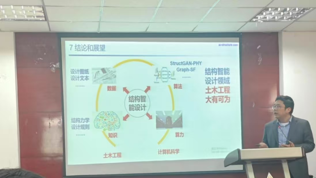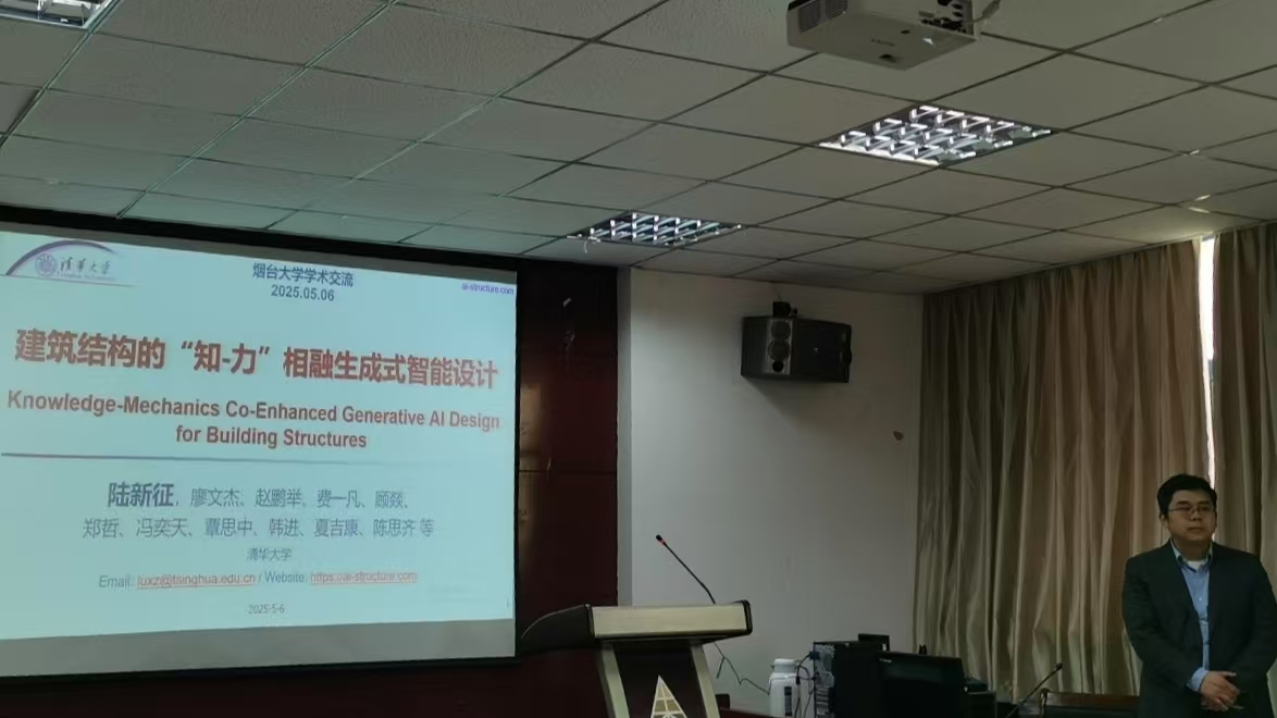 2025年5月6日下午,清华大学土木工程系教授、防灾减灾工程研究所所长陆新征在烟台大学土木馆A304作题为《建筑结构“知−力”相融生成式智能设计》的学术报告。作为工程力学领域权威专家,陆教授系统阐述了人工智能技术在建筑结构设计中的创新应用与发展前景。