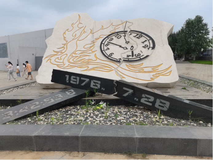 进入唐山地震遗址纪念公园,最先映入眼帘的是一只裂开了一条深深裂痕的钟,凝固了时间:1976年7月28日3时42分56秒,我们不难想像当时唐山就是在那一刹那,房屋倒塌,城市毁灭,24万多鲜活的生命葬身瓦砾。时钟上的裂痕永远不会闭合,就像大地震带给唐山的伤痛永远不会消失一样,深深印刻在唐山人民、全国人民的心中。