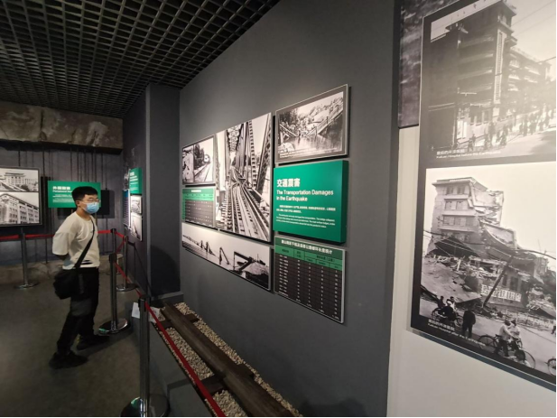 迈入地下博物馆,一进门就看到这一幕,解放军顶住柱子救下旁边的小孩子,为他们留下生机,栩栩如生的画面令人心情悲痛,再往前走,就看到地震遗址,整片大地满目疮痍,黑色笼罩在上空,东倒西歪的房屋倒塌的看不出原样……这是大地震来临时的样子,仿佛世界末日,我震撼于这些场景,可怕的地震带来的灾害令人绝望。还好,唐山挺过来了!