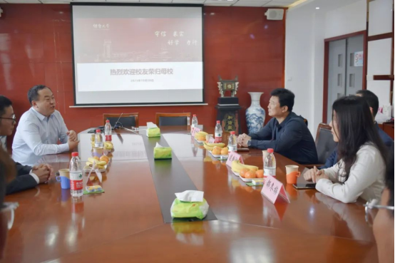 曲峰老师作为当年的辅导员,回忆涌上心头,他不禁感概道:“四年时间里,看着你们成长,看着你们毕业,现在都成了精英,过的都很好,我很开心,烟大土木工程学院永远是你们的避风港。” 接着逯静洲院长从学院专业、师资力量及发展趋势等方面向两位校友介绍了土木工程学院的现状。