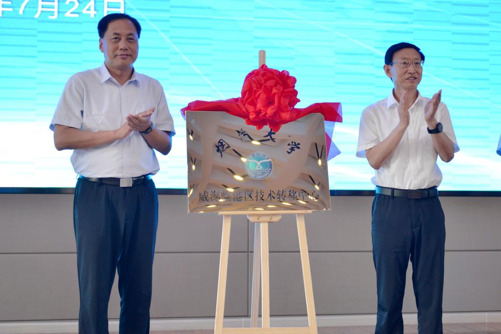 (威海临港区)技术转移中心”揭牌。服务地方办公室主任毕朝辉代表学校与临港经济技术开发区签署战略合作协议。