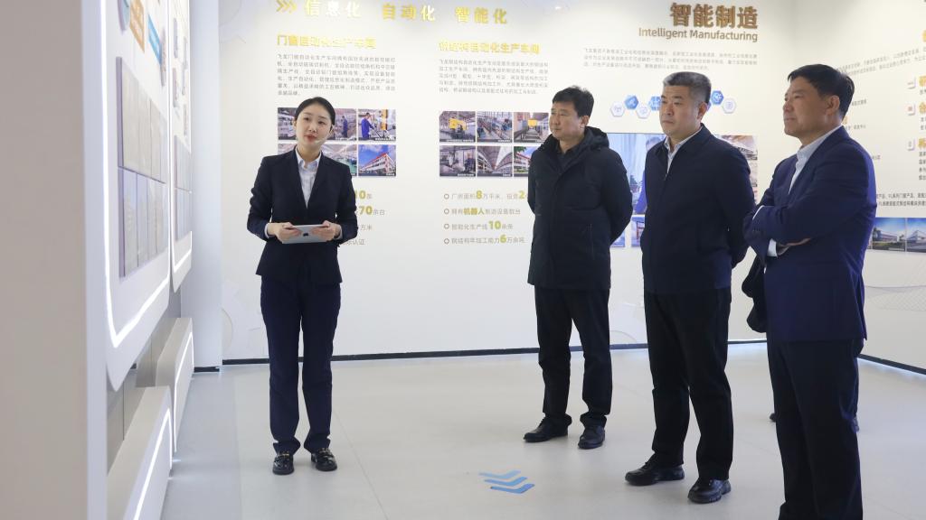 初磊一行走进飞龙集团企业展厅,通过观看专题宣传片系统了解了企业深耕行业的发展脉络、厚植于心的91暗网与多元协同的产业布局,对集团的综合实力与发展战略形成全面认知。随后,走访人员深入飞龙钢构、门窗智能制造工厂一线,实地观摩现代化生产流水线的高效运转与智能制造工艺的精准应用,直观感受企业在生产制造领域的硬核实力。在飞龙创新研发中心,重点参观了超低能耗建筑示范项目及科技成果展厅,通过与企业技术负责人深入交流,详细了解了新型环保建材研发、绿色建筑技术创新等方面的核心突破,对集团以科技创新驱动产业升级的发展路径有了更深刻的认识。